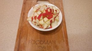 - Den Apfel in Scheiben schneiden. Probieren Sie zuerst den Apfel Es sollte süß und lecker sein, das Ergebnis hängt auch davon ab.