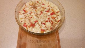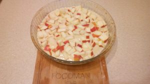 - Wir verteilen den Apfel auf dem Teig und bestreuen ihn mit Zimt (optional).