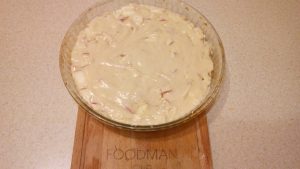 - Eine Schicht Äpfel wird mit dem Rest des Teigs bedeckt. Wir setzen unsere Charlotte in backofen für 50 minuten!