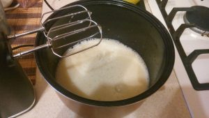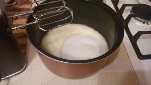 - 1 Tasse Zucker hinzufügen. Mit einem Mixer dick schlagen Schaum.