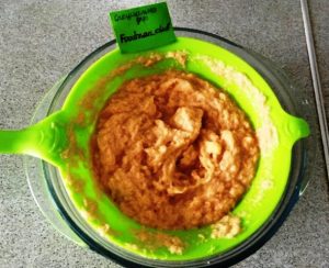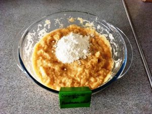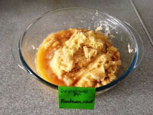 - Wenn die Masse flüssig ist, fügen Sie ein paar Art. Esslöffel Mehl, Ei und Salz nach Geschmack. Mischen.