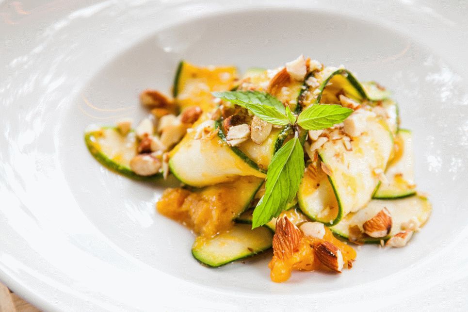 Möchten Sie etwas Neues tun, um eine Kleinigkeit zu essen? Dann versuche es Bereiten Sie einen gesunden und köstlichen Salat mit Zucchini und Aprikosen.